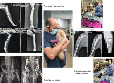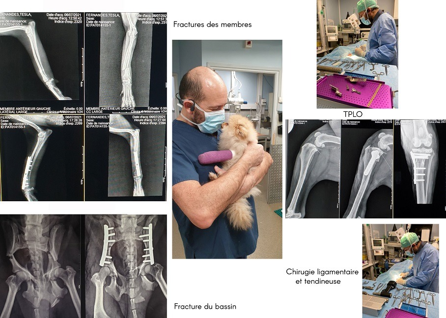 Fort d'une expérience reconnue en Île-de-France depuis plus de 25 ans, nous nous déplaçons pour réaliser des interventions chirurgicales orthopédiques : pose de plaques vissées, broches, fixateurs externes et prothèses afin de réparer les traumatismes des membres thoraciques et pelviens.